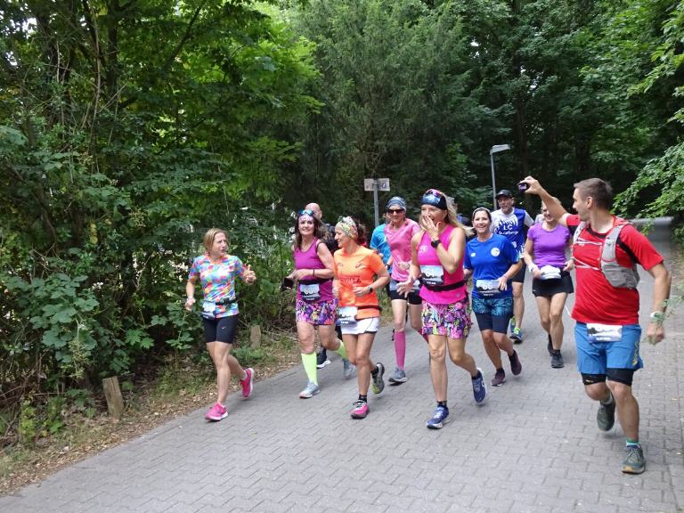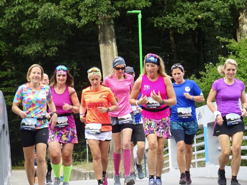 Spannender war es bei den Frauen. Mona Lesly Winter vom Spiridon Frankfurt übernahm schnell die Führung, nach zwei Runden hatte sie einen guten Vorsprung erlaufen, doch ab Runde 3 war alles anders. Mona durch Krämpfe beeinträchtigt wurde durch Christiane Neidiger von "Die Laufpartner", Katharina Mühlhoff, "LAG Saarbrücken &C.A. Els Sitges" sowie Malin Auraß, "LG Nord Berlin Ultra Team" überlaufen. Christiane lief ein konstantes Rennen und belegte mit 3:41:12 den ersten Platz. Katharina Mühlhoff war anfangs noch im Rennen um Platz 1 dabei, die letzten 4 Runden wurde sie etwas langsamer, aber liess sich den zweiten Platz nicht mehr nehmen und beendet als Zweite mit 3:47:56 den Lauf. Malin Auraß gab alles um an die Zweiplatzierte heranzulaufen. Es reichte nicht ganz, aber Lohn ihrer Anstrengung war der dritte Platz mit 3:50:06.
