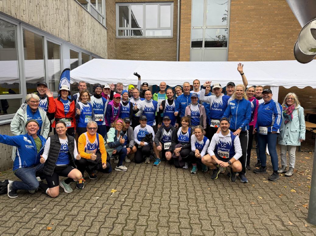 Mit Spaß und Ausdauer: Vereinsfahrt zum Nordwalder Laufspektakel Spaß, Ausdauer, Lauffreude, Geselligkeit, Wind und Wetter: Alles drin war in der Vereinsfahrt des LC Duisburg zum Nordwalder Laufspektakel. „Richtig schön, ein toller Tag. Besonders schön war es, viele LCer wieder gesehen zu haben“, lautete der einhellige Tenor der Aktiven und Mitreisenden des Laufclubs nach der Reise ins Münsterland. Trotz der nasskalten Witterungsbedingungen hatten alle nicht nur auf den Laufstrecken viel Freude. Der 5. Auflage des Nordwalder Laufspektakel brachte dem Veranstalter ein Rekordmeldeergebnis: Mit 1100 Meldungen und 939 Finishern waren so viele Athleten und Athletinnen wie noch nie dabei. Das lag auch am LC. Als größte Gemeinschaft kam der LC Duisburg mit über 42 Aktiven über die Ziellinie und wurde vom Veranstalter als teilnehmerstärkster Verein mit flüssigem Proviant belohnt. Zudem konnte der LC über die Distanzen 5 km, 10 km und Halbmarathon insgesamt elf Podiumsplatzierungen in den Altersklassen holen. Unterm Strich zählte für alle die bloße Teilnahme an dem gemeinsamen wunderbaren Tag. Die Resultate sind hier. Die Bilder sind hier. |